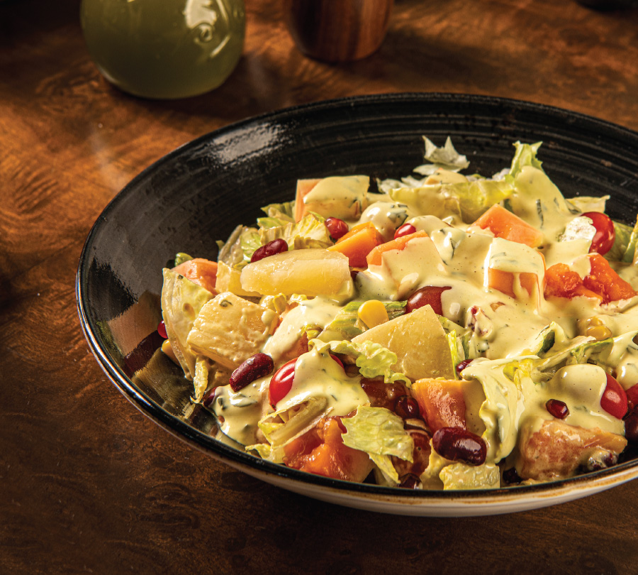 lettuce , tomatoes , fruits and nuts all in special Sauce - الخس والطماطم والفواكه والمكسرات كلها في صلصة خاصة